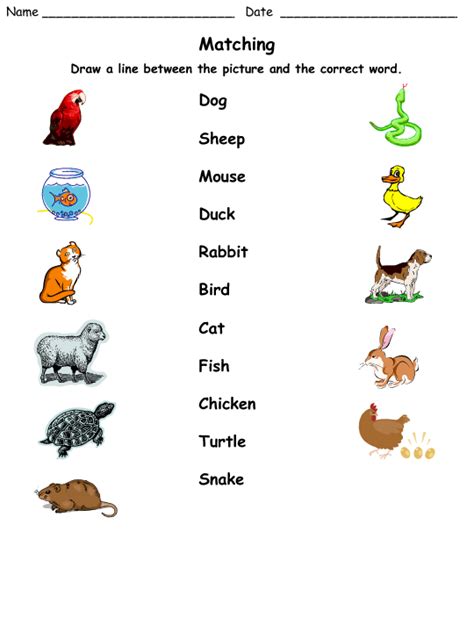 Matching Pets to Their Names from busyteacher.org